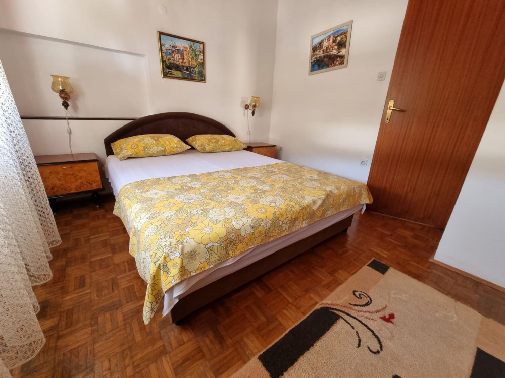 Jednosobni apartman se nalazi na spratu kuce i velicine je 50 m2. U jednoj sobi se nalazi francuski krevet, a u dnevnom boravku je kauc na izvlacenje. Apartman takodje ima kuhinju, kupatilo i terasu. U apartmanu se mogu naci klima, kablovska televizija, WiFi internet, kao i parking koji je besplatan za sve nase goste.