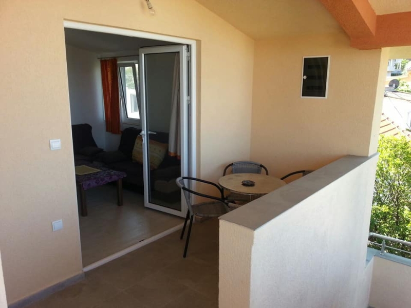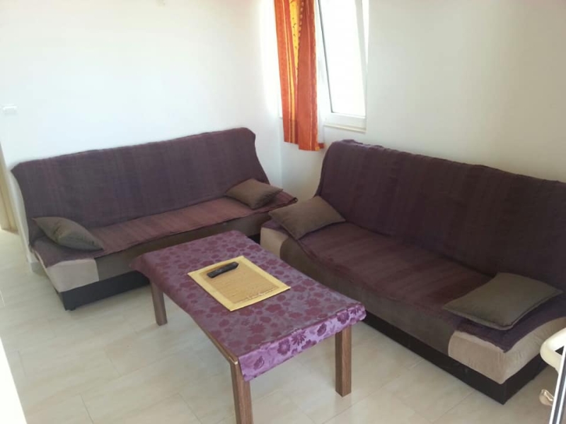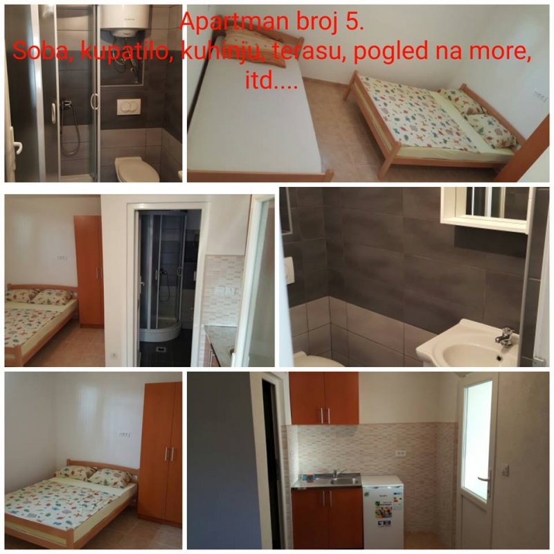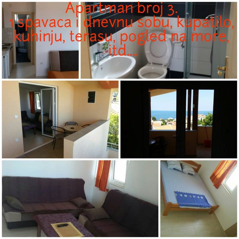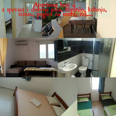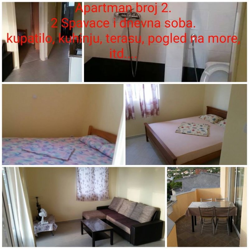 -Apartmane sa 2 spavace sobe, dnevna soba, kupatilo, kuhinja, terasa sa pogledom na more.