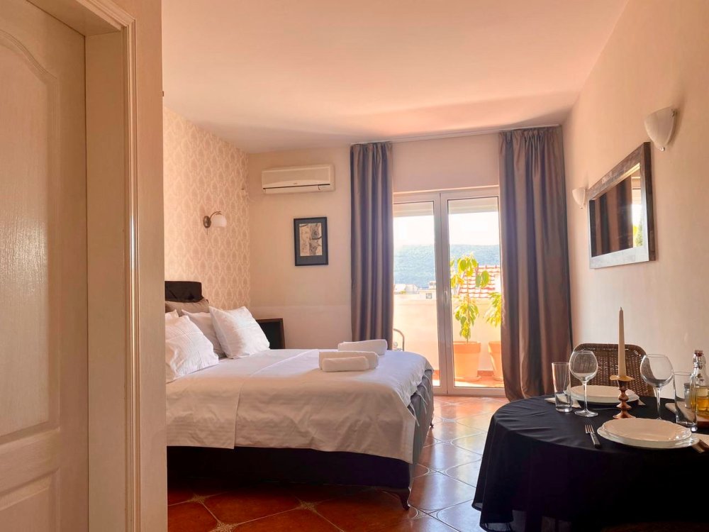 Apartmani Meljine su smjesteni na 200m od obale, u mirnom dijelu naselja. Gostima je na raspolaganju wi fi, klima, tv, parking, dvoriste sa zejednickim prostorom za sjedenje i rostilj. Na putu do plaze se nalazi prehrambena prodavnica, mala i dobro opremljena piljara, restoran, kafici, autobusko stajaliste za gradski i medjugradski prevoz odakle mozete biti za par minuta u centru Herceg Novog ili u novom luksuznom naselju Porto Novi u Kumboru. Pored gradske plaze Sidro, na udaljenosti od 300m je u hladovini borova plaza Lalovina, a izmedju su plaza sa sitnim pjeskom za malu djecu, i jedna moderna betonska palza sa kafe barovima. Sa druge strane od gradske plaze, nedaleko od spa centra hotela Lazuro je jos jedna nova plaza.