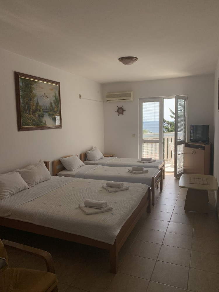 U ponudi nudimo studio dvokrevetne, trokrevetne i cetvorokrevetne apartmane koji su klimatizovani, kompletno opremljeni kuhinjom, kupatilom, tv-om, wi fi internetom i terasom sa pogledom na more.