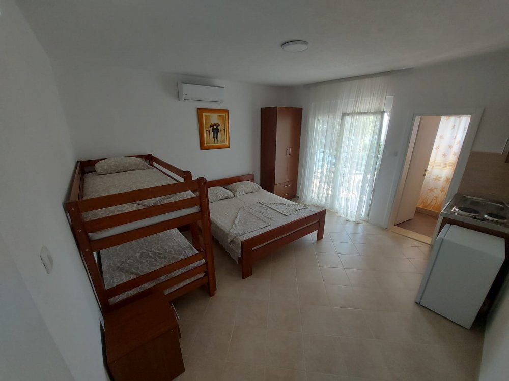 Površina prostorije: 25 m2Apartman sadrzi francuski krevet , krevet na spratu, kuhinju, kupatilo, terasu sa pogledom na more, internet, kablovsku, klimu. U apartmanu mogu boraviti 4 osobe. Obezbedjeno je parking mjesto.