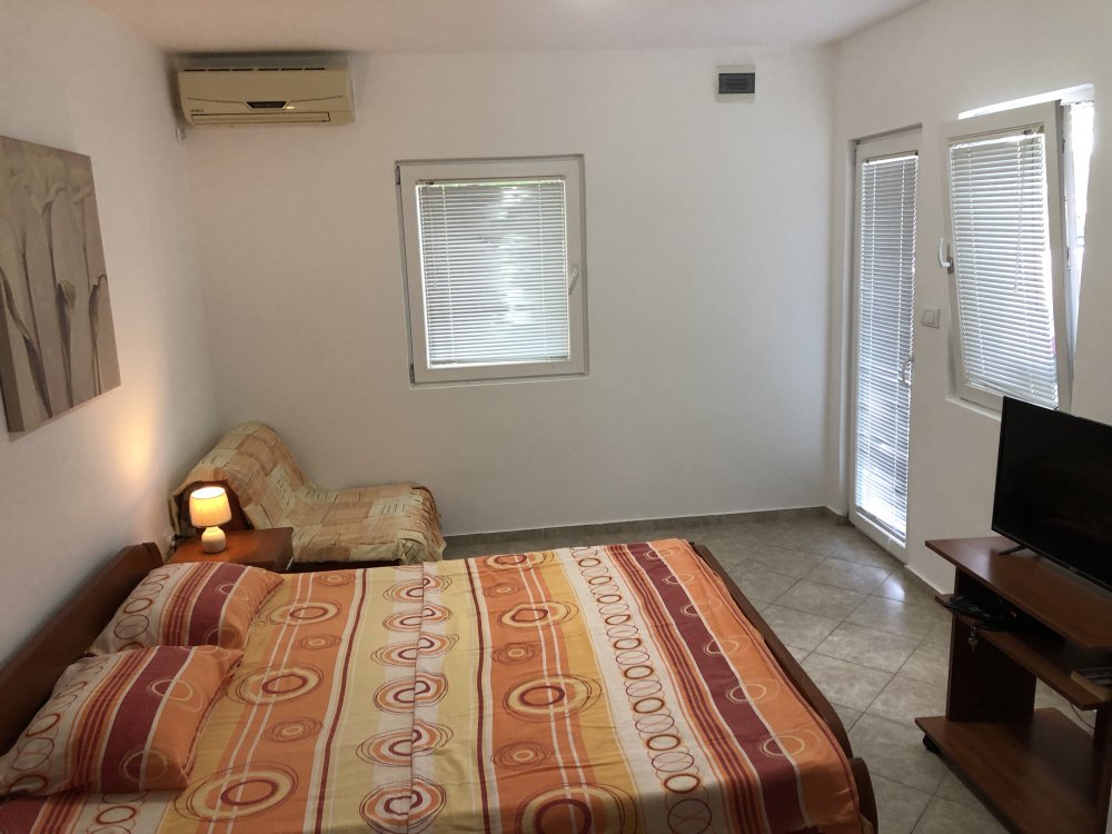 Površina prostorije: 25 m2Apartman sadrzi francuski krevet, singl krevet i fotelju na razvlacenje, kuhinju, kupatilo, terasu sa pogledom na more, internet, kablovsku, klimu. U apartmanu mogu boraviti 4 osobe. Obezbedjeno je parking mjesto.