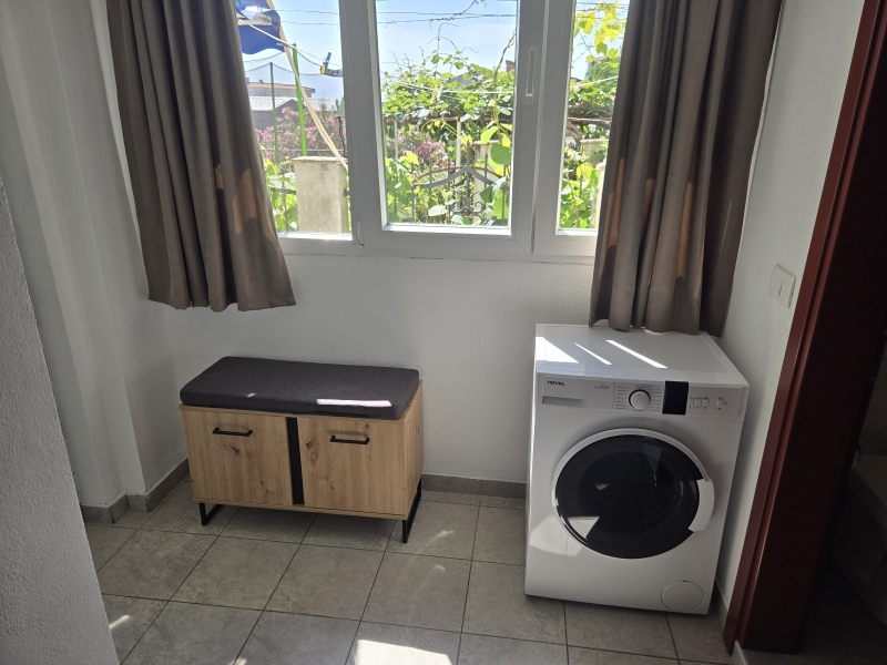 Stan je opremljen veš mašinom, a terasa koja se proteže duž cijelog stana pruža savršen prostor za opuštanje sa malom baštom. Terasa je prostrana, udobna i zaklonjena od ulice, što garantuje privatnost i mir.