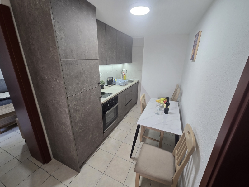 Površina prostorije: 80 m2Nudimo vam jednosoban stan koji obuhvata sve što vam je potrebno za udoban boravak. U stanu se nalazi prostrana soba sa kupatilom, opremljena francuskim krevetom i singl krevetom, kao i klima uređajem. Kuhinja je savremeno opremljena, sa kompletnim posuđem, mašinom za posuđe i velikim frižiderom, što olakšava pripremu obroka.