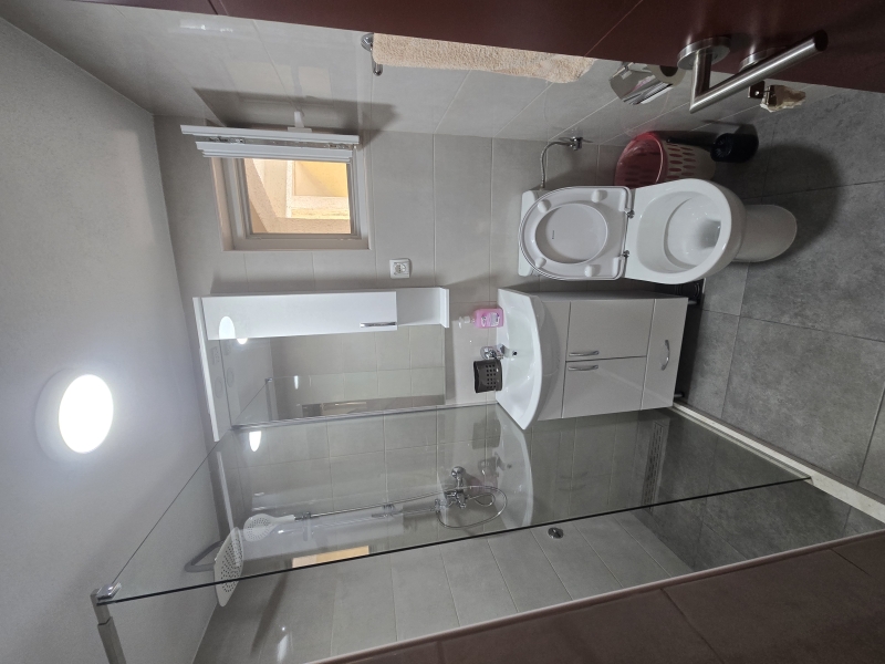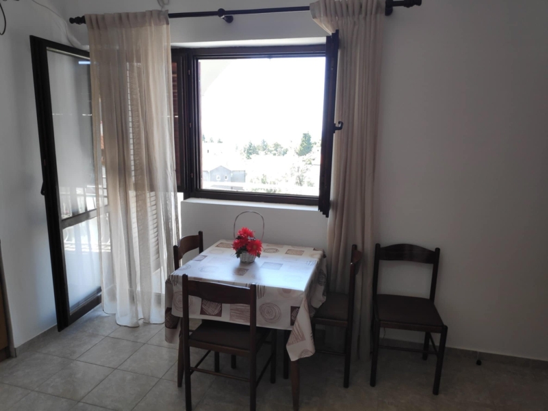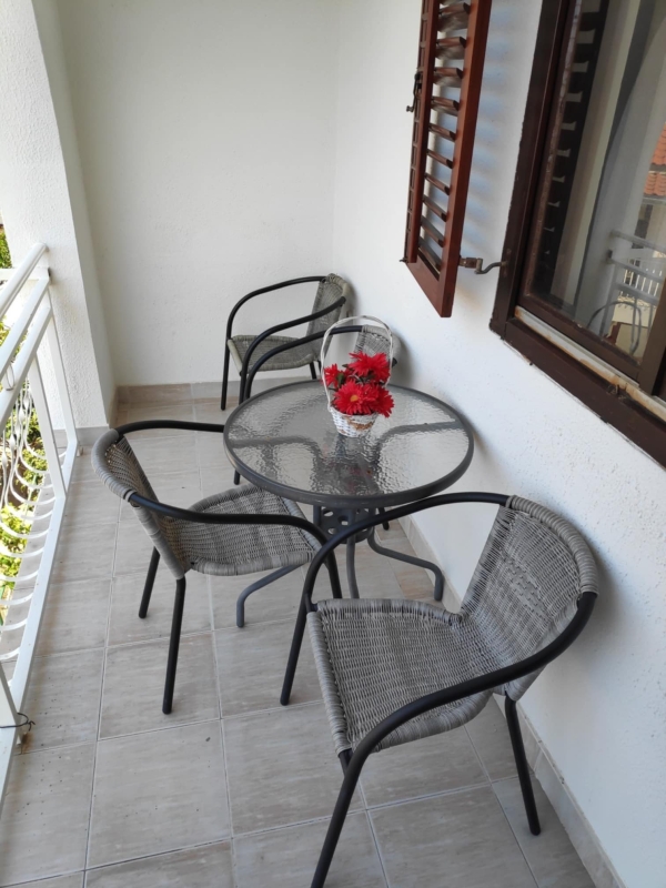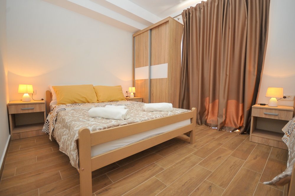 Apartman sadrzi francuski kreveta i dva singl kreveta, zasebnu kuhinju, kupatilo,tv,klimu,veliku terasu sa pogledom na more, besplatan brz internet.