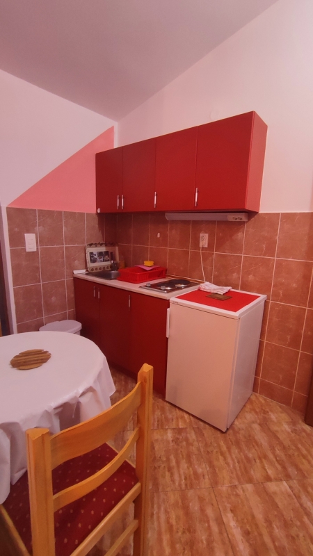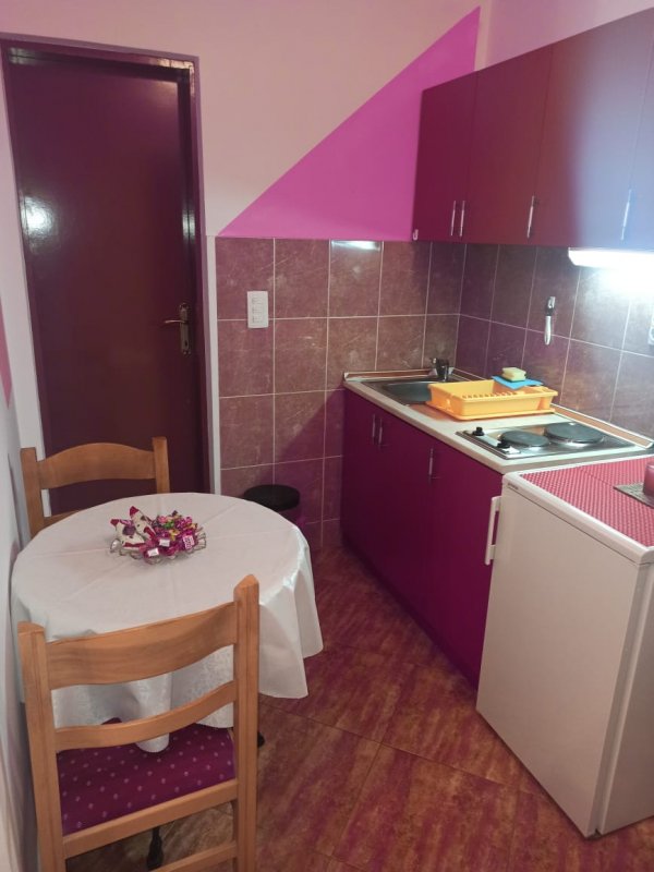 Kompletno opremljena kuhinja se nalazi u svakom apartmanu kao i kupatilo sa tus kabinom i fenom.