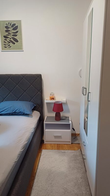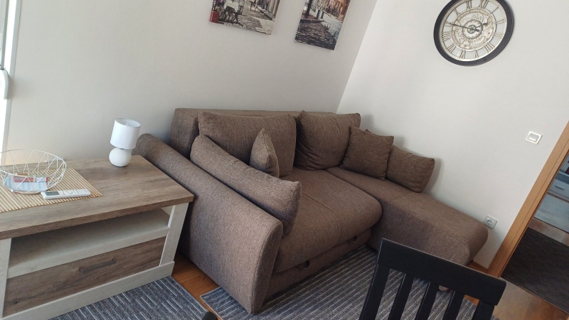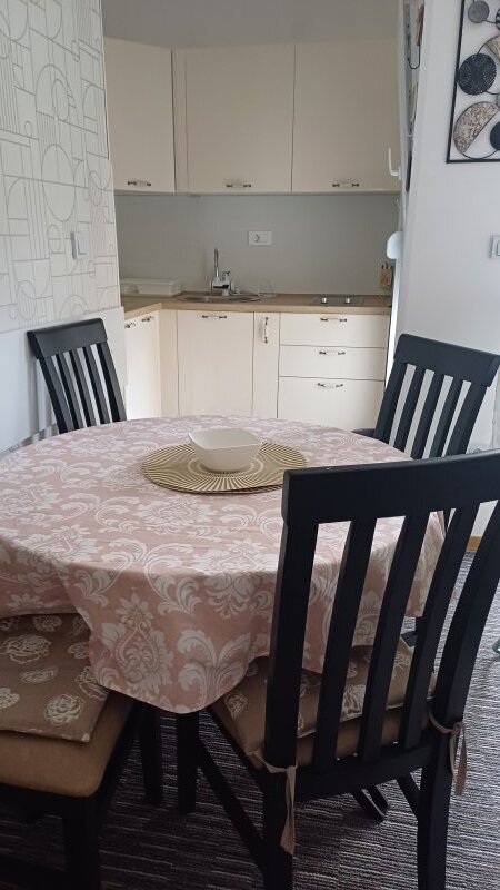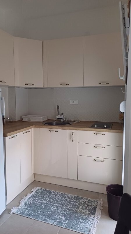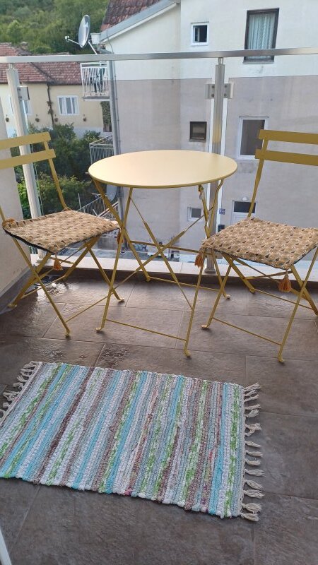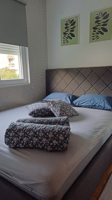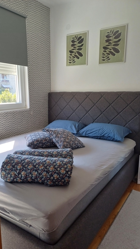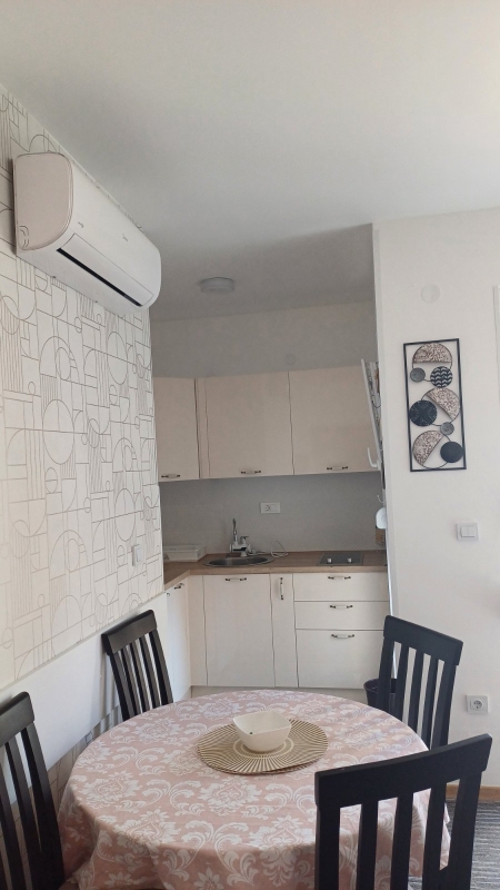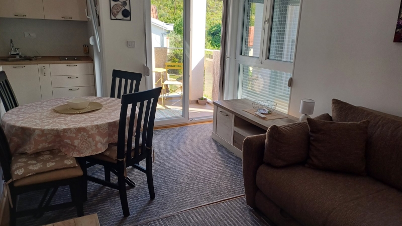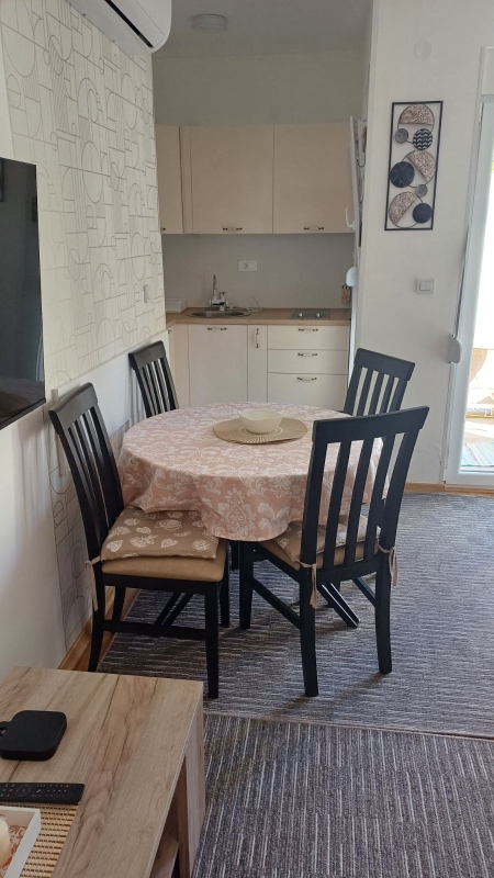 Стан 35 м2 поседуне спавацу собу са брачним креветом, дневни боравак са клима уређајем, гарнитуром на развлачењу,тв,трпезарија,излазак на терасу која гледа на борову шуму и на море