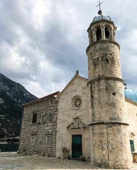 Ovo ostrvo je vjestacko i napravljeno je u 15. vijeku. Prema predanju, na hridi usred zaliva, dva su brata pronasla sliku Gospe. Perastani i Kotorani su odlucili da na tom mjestu sagrade hram. Godinama su oko hridi nasipali kamenje svojim brodovima i barkama, potapali brodove i barke. Crkva posvecenja Gospi podignuta je 1630.godine.