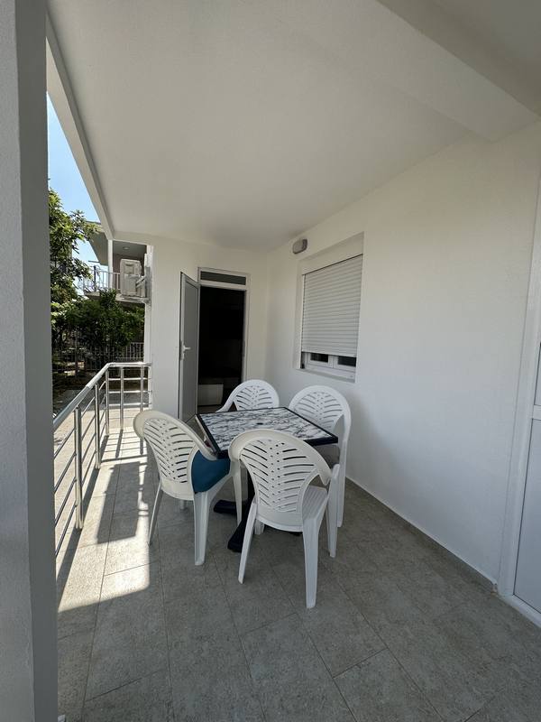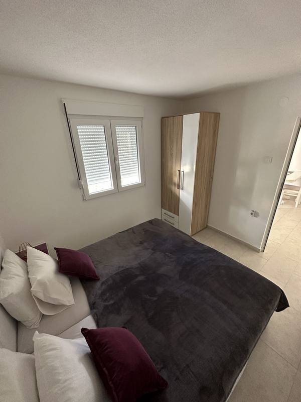 Površina prostorije: 50 m2Lux opremljen jednosoban stan sa jednom spavaćom sobom, dnevnim boravkom sa velikom ugaonom garniturom, trpezarijom, kuhinjom potpuno opremljenom (ploča za kuvanje, rerna, mašina za sudje, frižider), kupatilo sa tuš kabinom. Klimatizovan, besplatan wi-fi, velika terasa sa mobilijarom za sjeđenje. Takođe obezbijeđen je privatan parking.