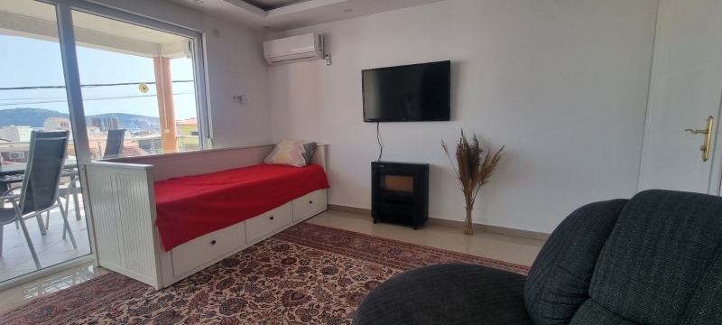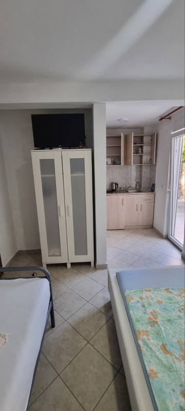 Stan i apartman se nalaze na oko 600m od plaze, a prodavnica preko puta stana.