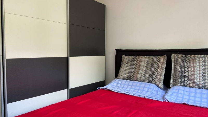 Stan je dvosoban za 6 osoba, sa dve spavaće sobe, sa bračnim krevetom, velikim dnevnim boravkom, velikom kuhinjom, kupatilom, hodnikom.
