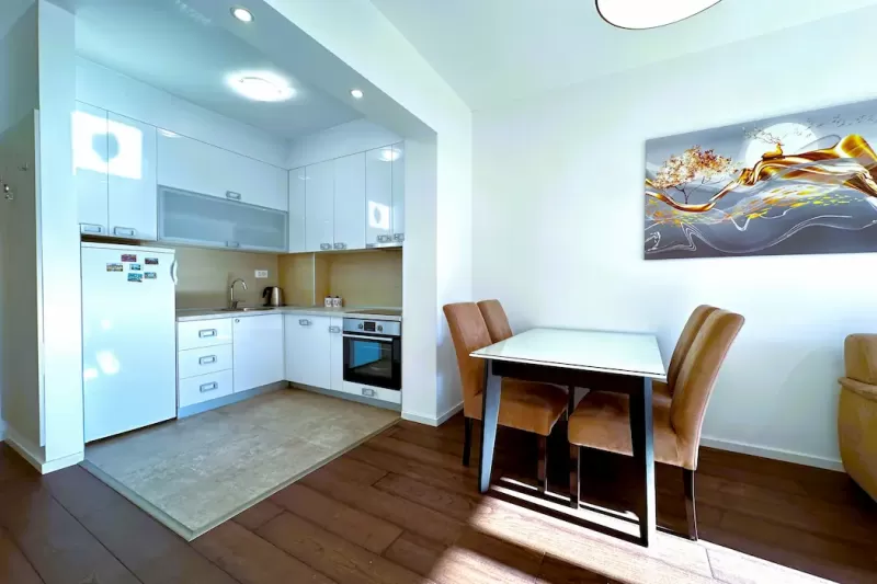 New fully furnished luxurious one bedroom apartment in the most luxurious building in Podgorica called Vezir situated on the bank of Moraca river in area called Preko Morače or Momišići, just a short walk to the City Centre. It’s very cosy, sunny, immaculately clean and tidy. Consists out of a very spacious living room, bedroom, fully fitted kitchen, dining room, hall, bathroom and the balcony with a nice view.