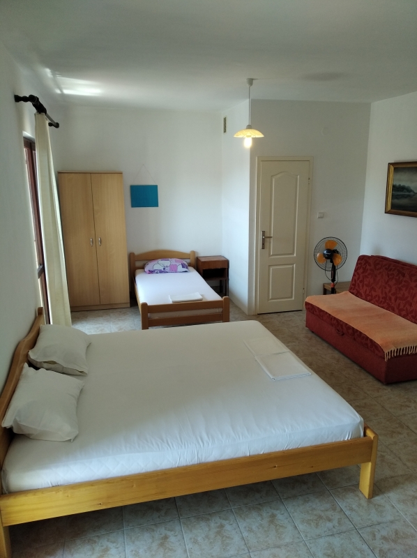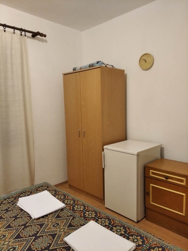 - Izdajemo smještaj sa svojim kupatilom i kuhinjom, kao i balkonom (kapacitet 3 osobe). Kuhinja je opremljena neophodnim posuđem. Fen i pegla na korištenje u sklopu objekta. Wi Fi