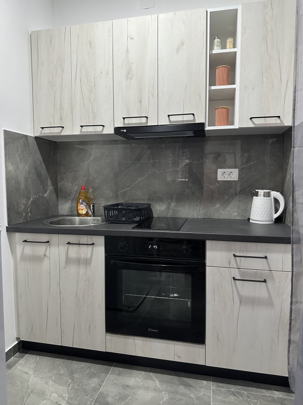 •Fižider, kuhalo za vodu, ravna ploča i rerna, mašina za sudove, kompletan kuhinjski pribor