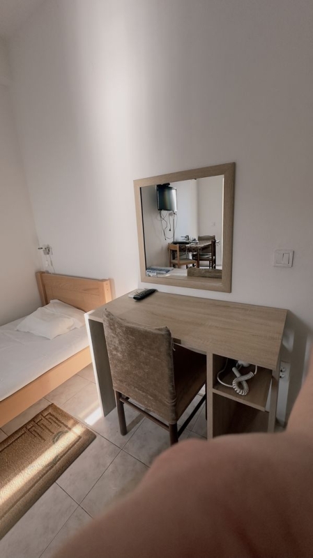 Površina prostorije: 25 m2Studio apartman za dvije osobe, sa kupatilom, klimom, tv-om, frižiderom i kuvalom za vodu.