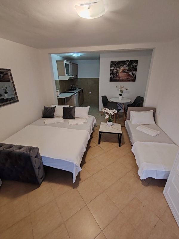 Površina prostorije: 30 m2Apartman za 3 osobe i pogledom na more. Poseduje sve potrebno za ugodan boravak.